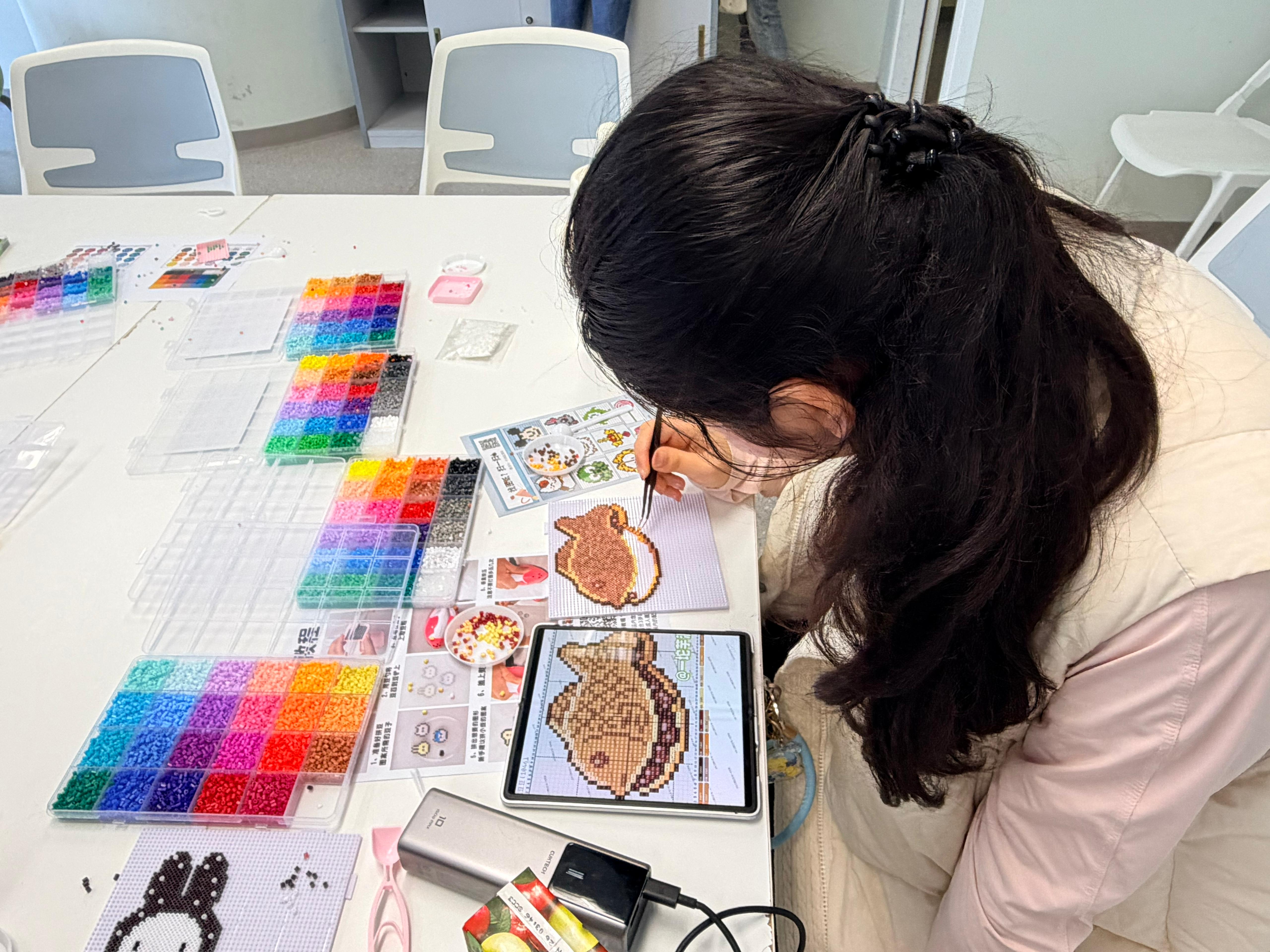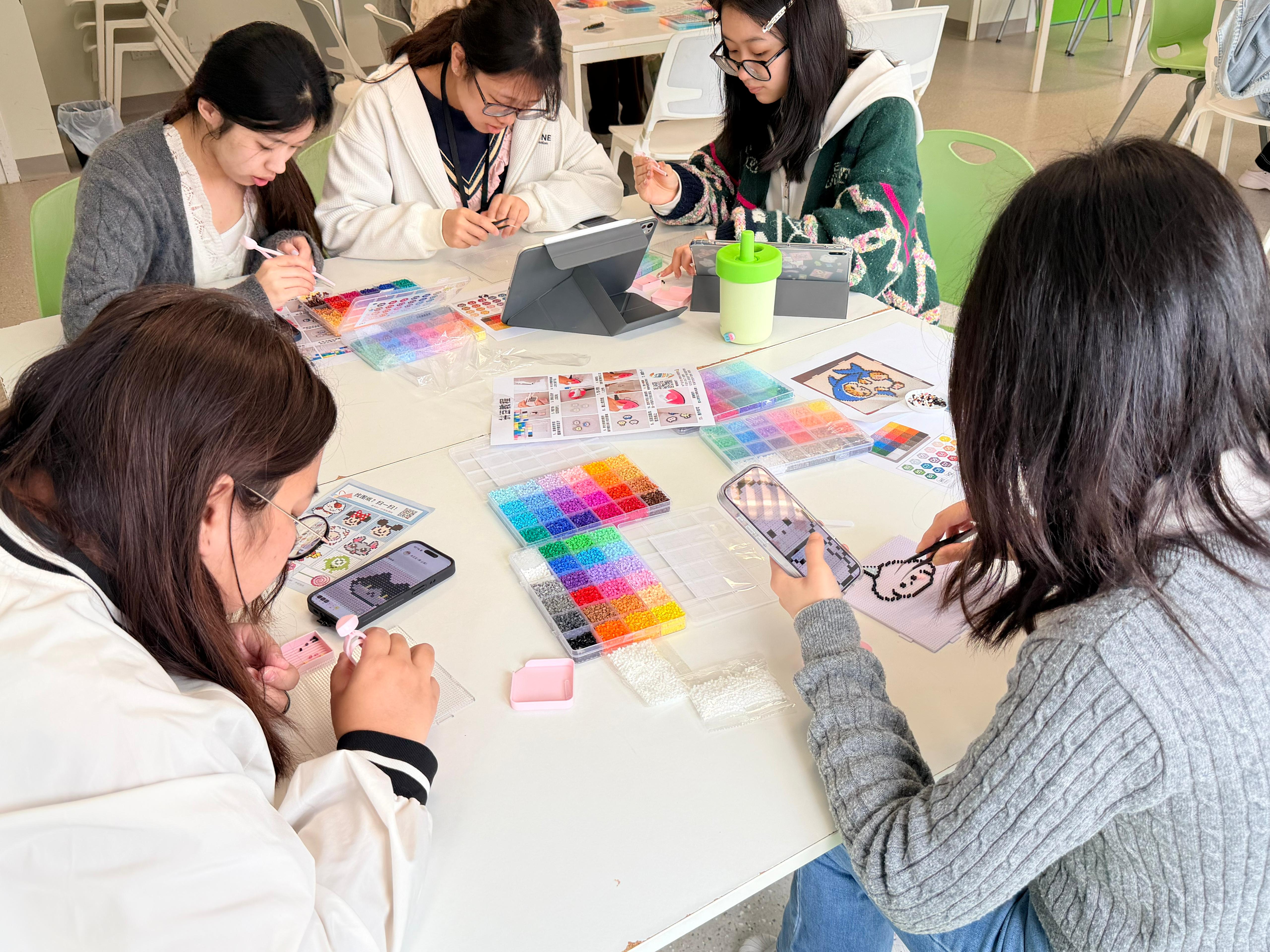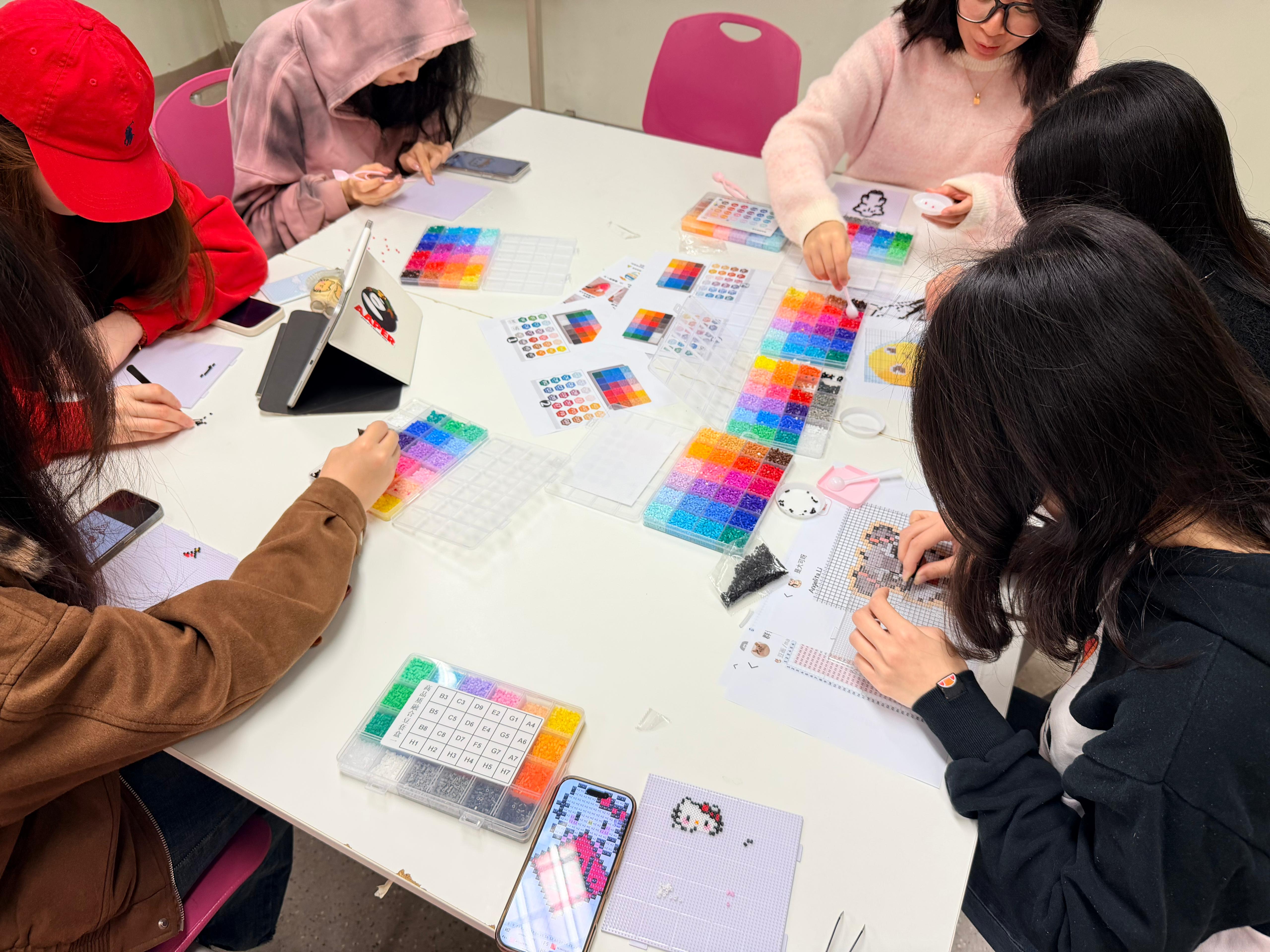 新學期新開始,來補充一點不一樣的能量~ 我們準備了超受歡迎的「拼豆手工藝體驗」,讓你在課業之餘放鬆雙手、激發創意。 由於第一日拼豆工作坊反應熱烈,許多同學向我們表達了參與的期待。為滿足大家的熱情期待,我們決定在第二日特別加開一場「拼豆工作坊」,歡迎同學們參加。 同學們在輕鬆的氛圍中,運用我們準備的各種材料與工具,親手製作獨屬於自己的拼豆作品。 工作坊完成的作品可以做成鑰匙圈或掛飾,當天就能直接帶走,成為陪伴同學們的新學期小禮物。